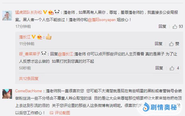 也有部分粉丝向潘长江道歉:老师好,我是蔡徐坤粉丝,我代表粉丝替你说一句不好意思,因为一些黑粉装作粉丝的口吻来招黑,给你带来麻烦了。