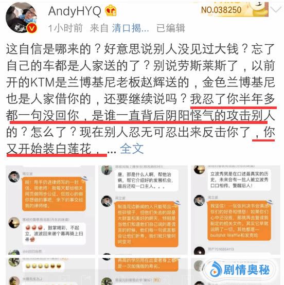 3月15号,黄毅清公开了周立波在群里聊天记录,反问周立波哪里来得自信?黄毅清表示:我忍你半年多一句没回你,是谁在背后阴阳怪气攻击别人?你又开始装白莲花?你要脸吗?