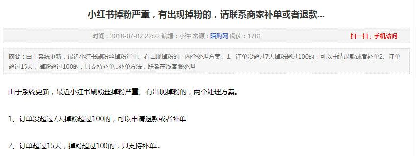 同时,我们也注意到这些卖家十分关注各大平台的发展动态和行情变动,比如“买粉网”会经常在商品资讯区告知用户关于暂停开单的通知。如果遇到平台系统更新,定期清理数据,用户遇到掉粉的情况,“买粉网”会及时提出处理方案,提醒用户补单或申请退款。