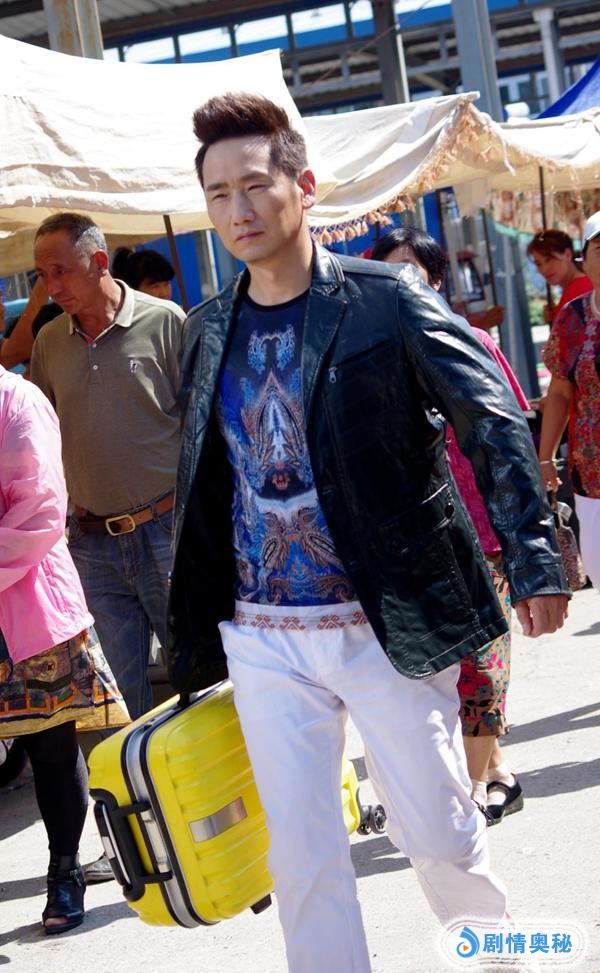 还有黑皮衣配白裤子的服装搭配,黑皮衣底下印有不明图案的T恤是什么鬼?旁边的天津喜哥还背着两大包东西苦丧着脸,异常艰难地往前挤,看这样子像是着急去火车站赶路的农民工,出一趟远门不容易大包小包的全都要带上,可是咱们见过的农民工虽然会带很多东西行色匆匆,但大多穿着朴素,哪有像他们这样打扮如此骚气的农民工?另外这剧照看起来喧嚣杂乱的背景,怎么感觉特别像是在哪里的露天市场赶集?如果这真是《站住!小偷》剧照的话,那想请问郑云蜀黍:这样的大反差你们这究竟是要闹哪出啊?