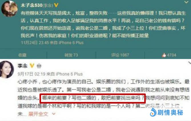 但是有传闻曾经说国,李念现实中是小三上位的,还说她是他老公的第二任妻子。李念则理直气壮的说,说我老公二婚的话就把他前妻找出来。同时义正言辞的说自己绝对不是小三。还说会对造谣的媒体进行诉讼。可见,李念和老公是真心相爱在一起的,并没有以破坏别人的家庭为前提。