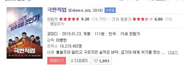 反观《极限职业》的成绩,不禁令人唏嘘。