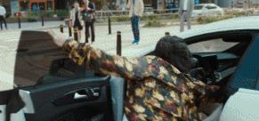 犯人抢夺一个女司机的车逃跑,这是街头追逐戏的套路吧。