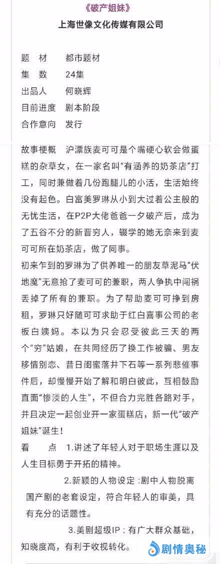 新金牌娱乐观察家听说,美剧破产姐妹要被翻拍成国产网剧了。目前这部剧已经进入剧本阶段,剧情和美剧差不多,但是形式本土化了一些,把毒舌女麦克斯的名字改成了麦可可,改个名字还好说,可是哪个演员能挑战这个经典角色呢?