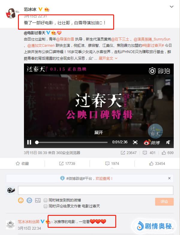 零流量,豆瓣8.0,硬核得不像国产青春片,却以青春的孤勇,最终治愈了青春。而当国产青春片渡过险关,终于还是迎来了真正的春天。从今以后,别再说羡慕什么《天才枪手》了,咱们国产电影,也终于拍出了拿得出手的类型混合青春片。甚至在影片上映首日,演员范冰冰一度深夜发文力荐《过春天》,而且还称呼67岁监制壮壮哥。除了引起了众多网友的好评,更是获得了粉丝团的支持和点赞。