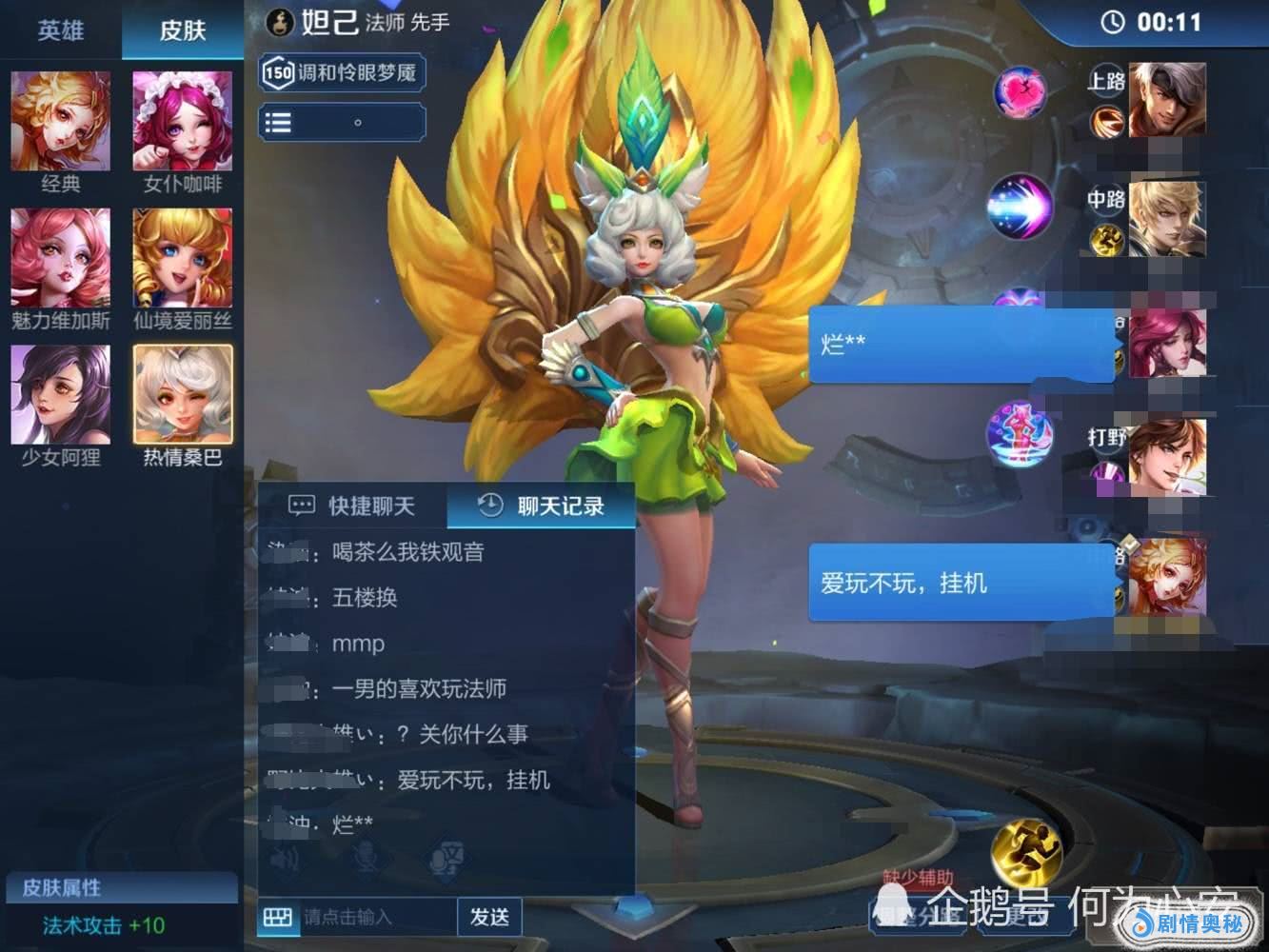 国服的法师中,也有许多分男玩家,况且只要不坑,玩得很好,法师谁玩都不是一样的吗,这样的歧视令人瞬间觉得,这些队友的素质也是不怎么的,选英雄跟性别无关,重点是菜不菜呀!