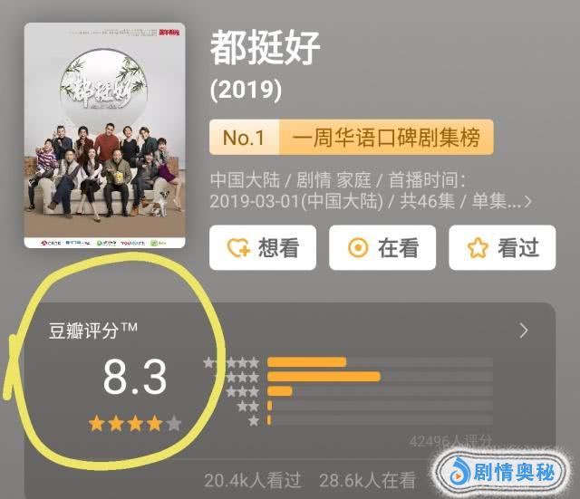 但令人想不到的是,收视率封神后,《都挺好》的豆瓣评分却跌到了8.3分(此前在8.5分以上),什么情况?