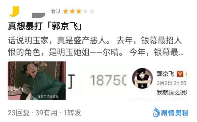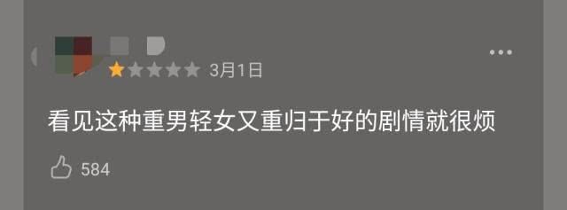 比如,有表示这个剧反映了重男轻女问题而感到不适的,直接打一星。