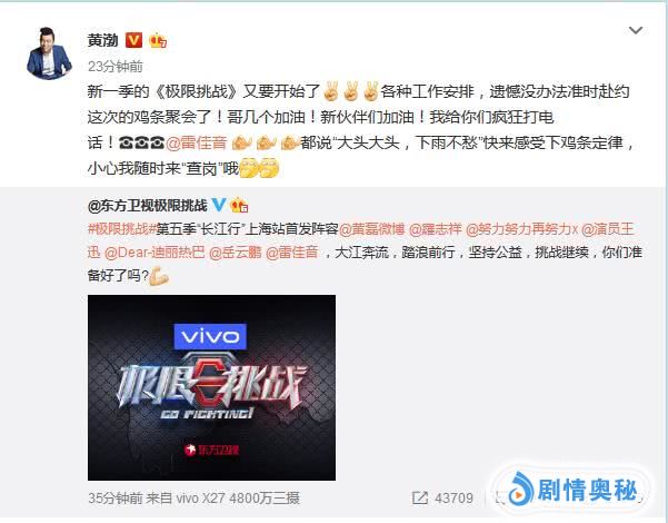另一方面,雷佳音、岳云鹏、迪丽热巴将惊喜加盟,给《极限挑战5》带来全新活力,黄渤特意在微博上@雷佳音:都说‘大头大头,下雨不愁’快来感受下鸡条定律,小心我随时来‘查岗’哦。