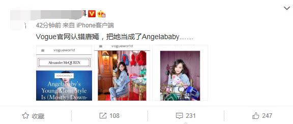 3月16号下午,有多个网友爆料,Vogue官网认错了Baby,把唐嫣当成了Baby,真是满屏的尴尬!