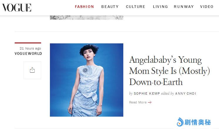 就是上面这个文章,点击进去就弹出来下面这个部分。介绍baby的文章不放baby的图片,居然放了唐嫣的图片,这个Vogue官网审核也太不严谨了吧!