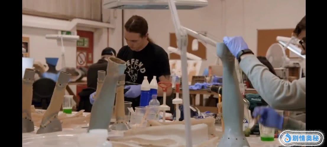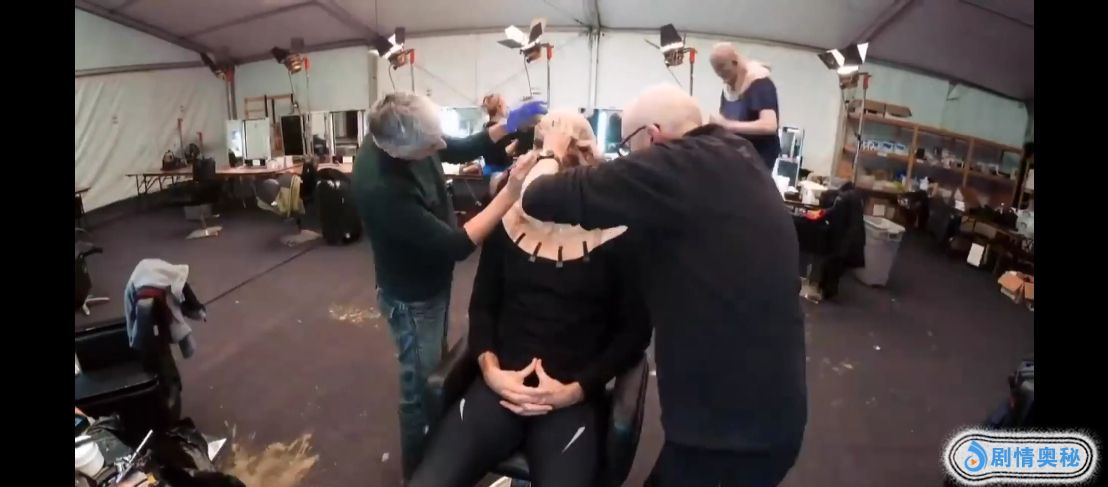 在《权游》当中最需要特效工作的就是异鬼们和一些患上了石人症的角色们。特别是石人,他们脸上、身上的每一个石头鳞片,都是特效化妆师们一个一个粘上去画上去的。他们有专业的化妆团队,包括设计师和化妆师等等。一开始化妆工作室只有六个化妆师,因为一开始只有六个异鬼角色,但是到了剧集后期,每一个画面都会出现四五十个异鬼角色,所以化妆师也从六个增加到了五十个。小小的化妆间已经满足不了《权游》剧组,为此它们还搭建了一个大化妆棚。