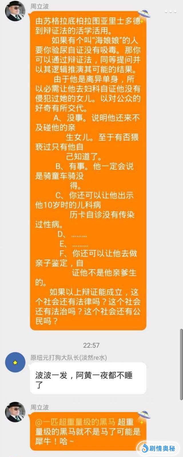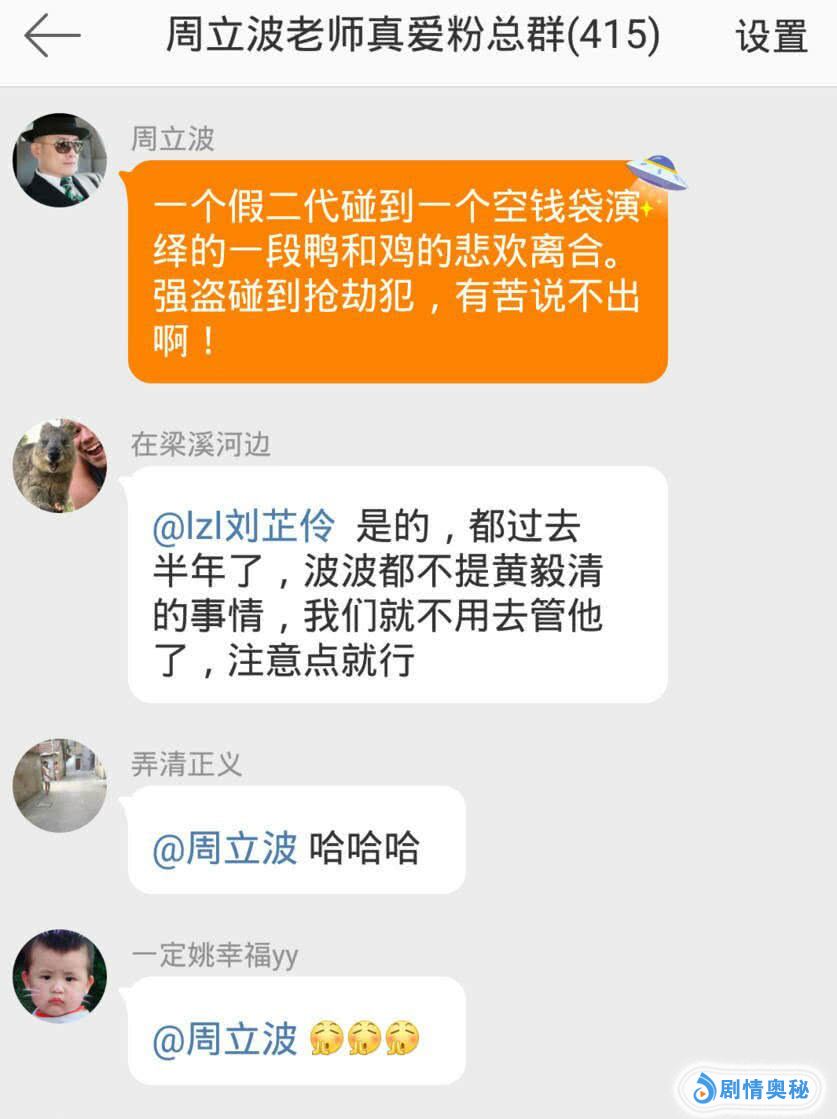 周立波在粉丝群里发表贬低黄毅清婚姻的言论,称“鸡和鸭的悲欢离合”,本来不能证明是他,或许是有网友冒充,但黄毅清不管不问,逮着周立波开撕,称“错了算他倒霉!”