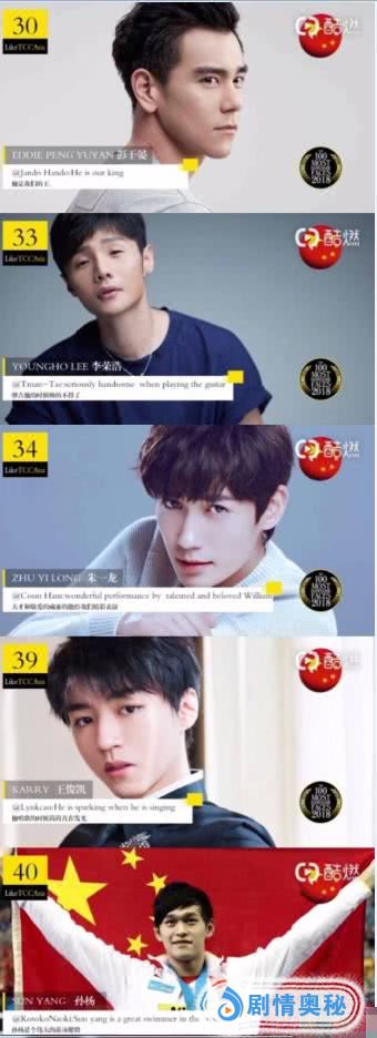 值得一提的是,沈腾在榜上名列第21名。他难道比徐峥帅气很多吗?我看未必,不知美国媒体评选的标准是什么。小眼睛李荣浩第33名,估计更多是对他创作才华的肯定。