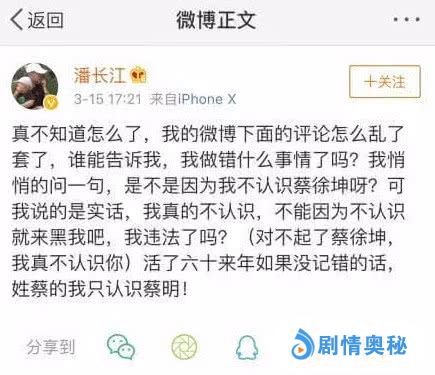 然而在节目播出之后,潘老师的微博得到了非常多人的围攻,引来了非常多不友好的话语,而最近潘老师就在微博上公开致歉,表示自己真的是不认识蔡徐坤,但也不能因为如此就来黑我,看的出来这件事情真的是困扰到潘长江老师了。