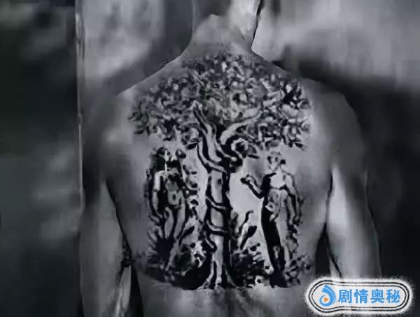 男人的背,是一副精致而夸张的文身。