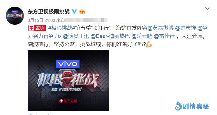 3月15日当天《极限挑战》官位宣布了第五季“长江行”上海站的首发阵容,首先黄磊、罗志祥、张艺兴、王迅四位原班人马还是回归了,但可惜的是孙红雷和黄渤两位大家很熟悉的演员都退出了节目的录制,大家应该都知道明星演员的行程的确是非常紧凑的,两位明星这一季退出录制也能理解。
