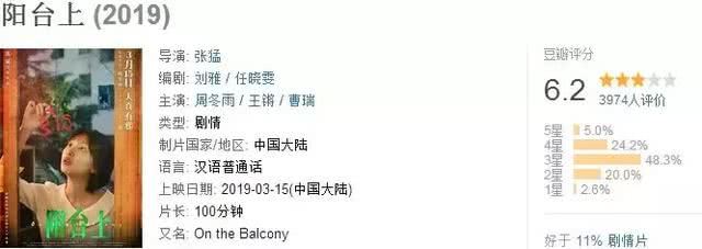 这一次,《阳台上》在豆瓣里只收获了6.2分,
