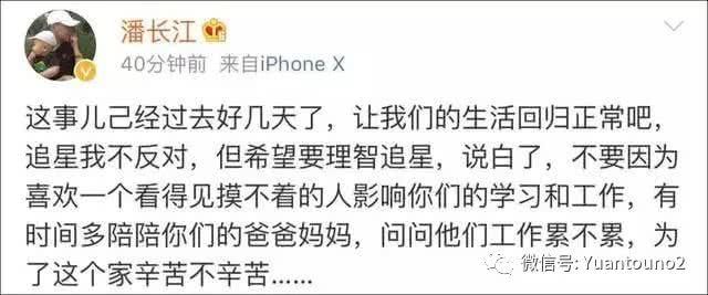 而在事件持续发酵后,16日,潘长江再次回应此事,并呼吁大家理智追星,“不要因为一个看得见摸不着的人影响了你们的学习和工作,有时间多陪陪你们的爸爸妈妈。”