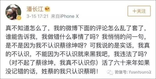 但是众多蔡徐坤网友并不买账,甚至发言攻击潘长江:蔡徐坤都不认识还有脸混娱乐圈?