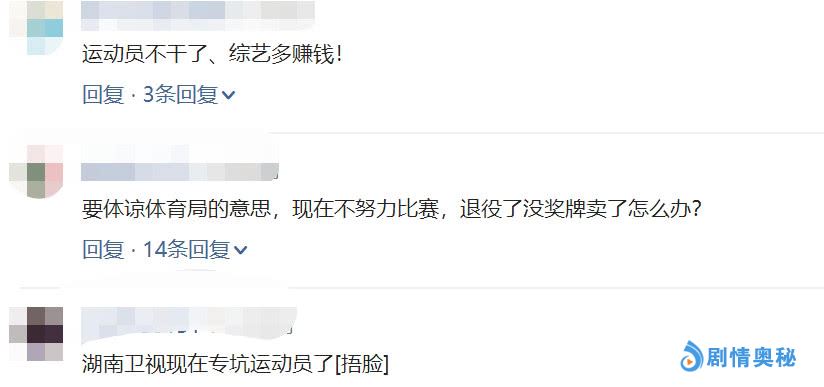 网友表示:真的是该啊,孩子你首先得是运动员,拿更多的奖牌才能参加更多的综艺。因为,如果你没有好的成绩,可能就是没人请你上综艺了。更有网友调侃:要体谅国家队的意思,等着退役了的没有奖牌卖怎么办。还有网友认为,现在芒果台总是坑运动员。因为张国伟参加的综艺正是和杨幂还有邓论谢依林一起参加的《密室逃脱》。
