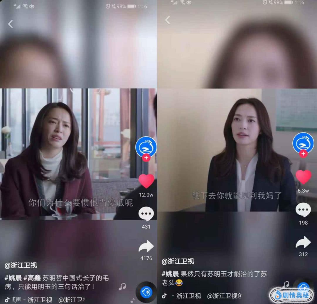 现实题材或正剧向的内容,做短视频时可以输出价值观。比如《都挺好》中对重男轻女以及男性劣根性的部分剖析深刻,一度引起“中国式渣爹”的讨论。这部剧在抖音上的相关段子也多是借苏明玉的嘴,数落愚孝的苏明成以及作天作地的老父亲,让观众看起来分外痛快,也更有转发的欲望。