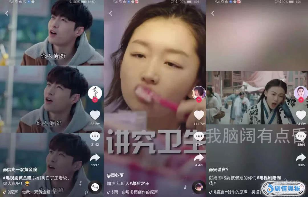 本文整理了部分今年在抖音上比较火的影视剧相关片段,试图探究影视剧通过短视频破圈的奥义。