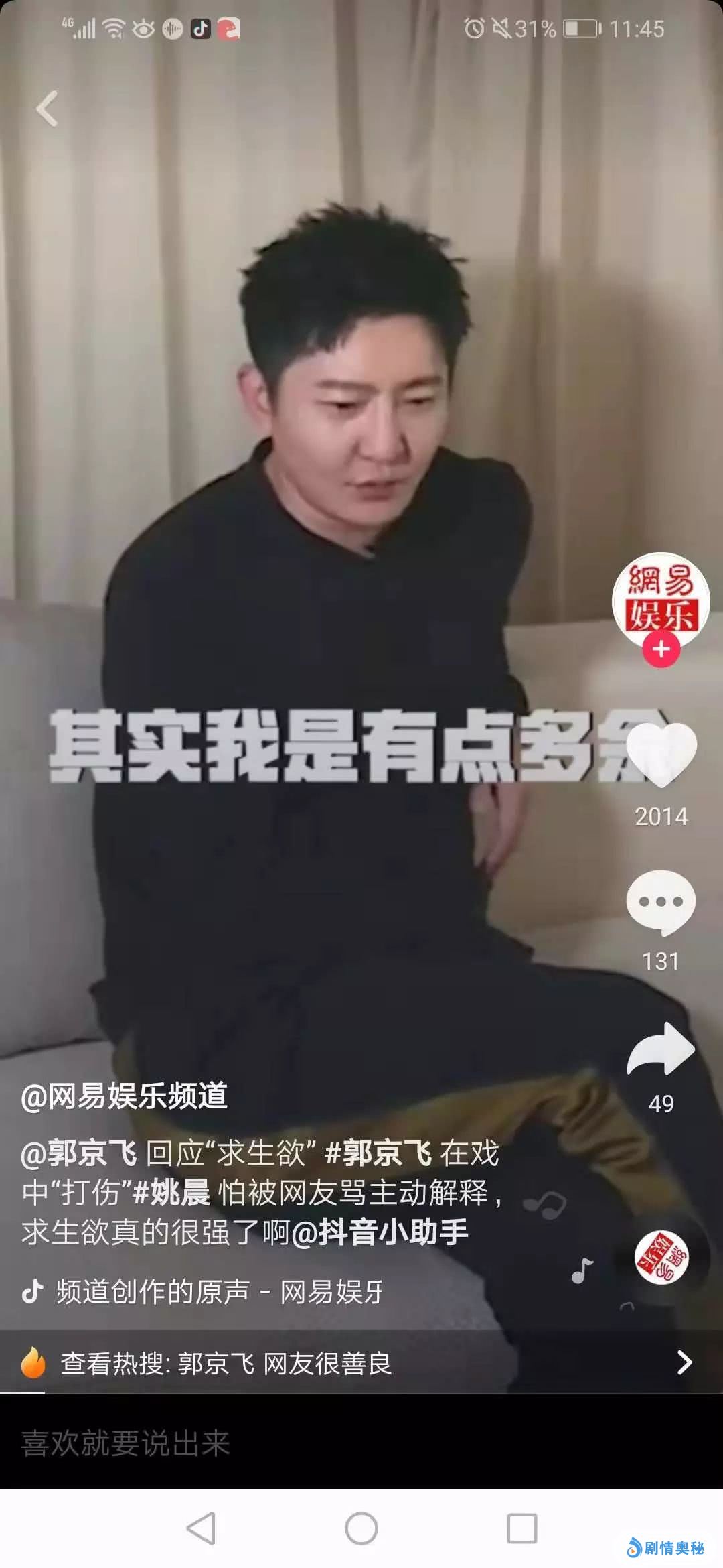 不过抖音视频的属性就在于,流量来也匆匆去也匆匆。基本上你还来不及为你获得的上万点赞喜悦,很快视频就不在热搜榜上了,只能不断生产新内容。这不刚过去一两天,郭京飞已经开始反省自己的求生欲有点多余,“其实这届网友把苏明成和郭京飞分的很开的”。