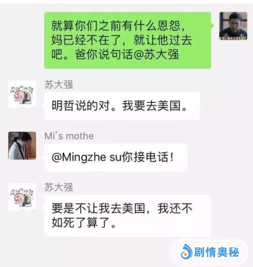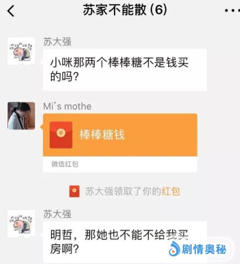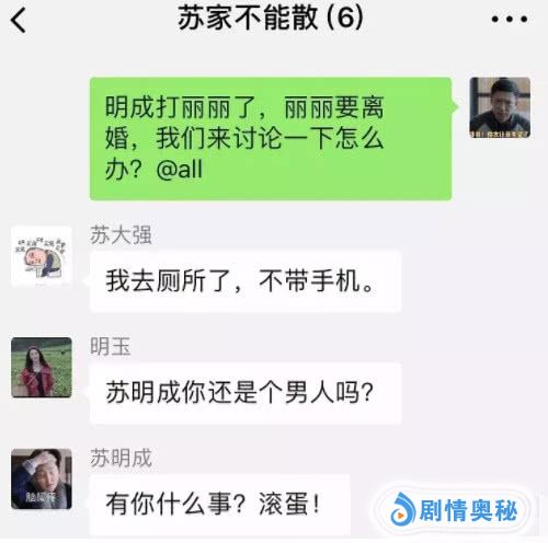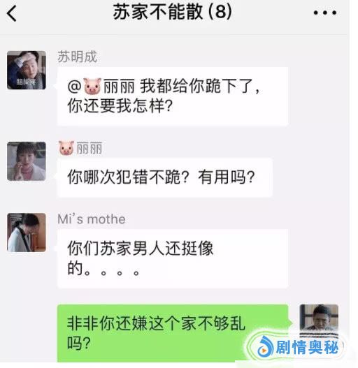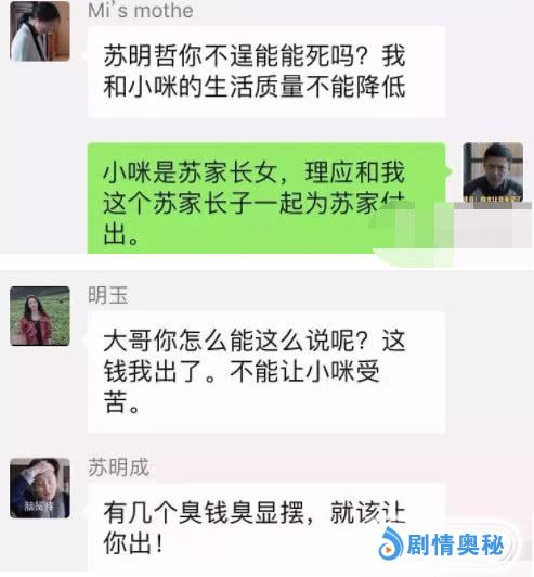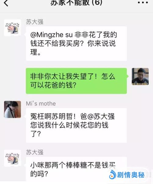 今天的苏明玉和苏明成让大哥苏明哲失望了么?答案:失望了!无论怎么样这个家不能散,于是苏明哲建起了微信亲友群。群名:苏家不能散!苏明哲自己是群主,家庭成员有:苏大强,苏明成,苏明玉,吴非,朱丽。