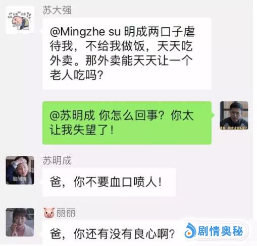 苏大强群里告黑状:明成两口子不给我做饭,天天吃外卖。我要去美国,明哲你不能不管爸啊。
