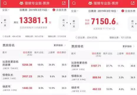 与此同时,《比悲伤更悲伤的故事》的豆瓣评分却从上映前的5.4分跌至5.1分,猫眼评分从上映首日的9分跌至8.5分,淘票票评分从8.8分跌至8.3分。