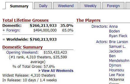 虽然《惊奇队长》在中国内地表现平庸,但是凭借北美本土、韩国等多个市场成功,全球票房已突破7.6亿美金(约合50亿人民币),成功击败《流浪地球》,登顶2019年全球票房年冠,这部漫威大片果然强悍!