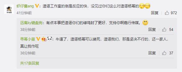 不少杨幂的粉丝纷纷赶来替杨幂叫屈,认为造谣工作室的辟谣很快,但对杨幂的各种负面新闻却不闻不问。