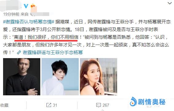 3月18号,有记者碰到谢霆锋本人,当面采访时询问是否和王菲分手了?谢霆锋表示否认,承认两个人没分手,他原话说:离谱,我们很好,你们不用相信。看来那些道听途说的小道消息不可信啊,都是听风就是雨。