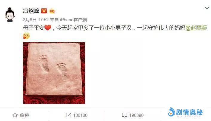 其实很早之前就有媒体爆料称赵丽颖的预产期在3月8日,于是当妇女节这天到来之时,很多媒体把关注的焦点都放在赵丽颖待产这个话题上,果不出其然,下午六点左右,冯绍峰通过微博正式对外宣布,赵丽颖顺利诞下一子,母子平安,于是很快“赵丽颖生子”的话题便登上了微博热搜。