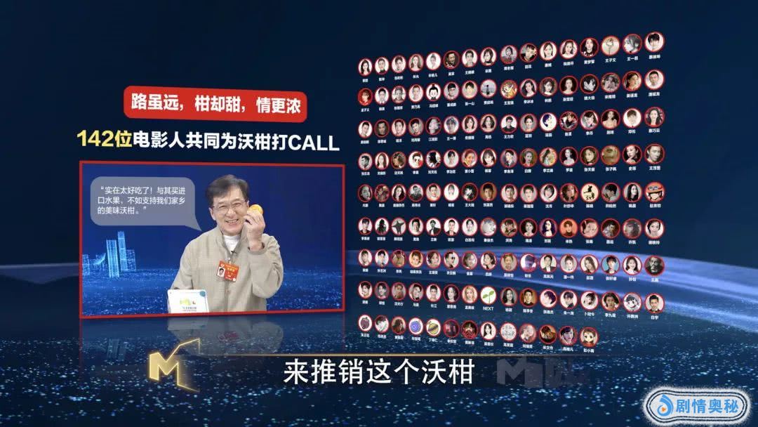 在这次两会期间,成龙先生结合脱贫攻坚的星光行动来推销沃柑,他发动了一百多位明星来一起卖,取得了很好的成绩,为贫困地区贡献了来自电影人的力量。