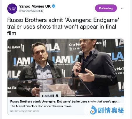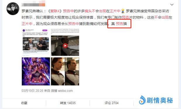 然而,在影片宣传预告和宣传海报放出不久后,影片导演罗素兄弟于3月18日在社交媒体上正式宣部,《复仇者联盟4》预告片镜头将不出现正片中,一时间又引来了众多吃瓜群众和网友的热议,而且评论区更是炸开了锅,网友纷纷脑洞大开评语千奇百怪,有网友吐槽到“预告骗”,甚至还有网友评论到:“害我激动半天”。不过还是有网友表示:“太爱漫威的骚操作了”!