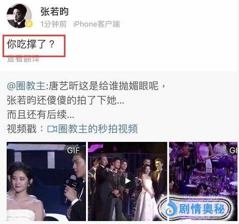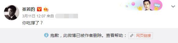 相比范丞丞的高冷,张若昀为女友唐艺昕怒怼营销号也是满满的男友力,一句“你吃撑了”,直接吓得将微博给删除了。当然这实力护女友的行为,也是让张若昀圈粉无数。