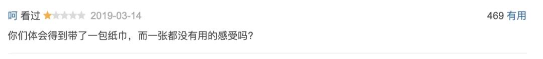 但矛盾的是,数娱梦工厂发现该片实际的口碑并没有与其火爆程度相匹配。目前该片在豆瓣上的评分为5分,超过84%的观众为该片打出了3星以下的分数。豆瓣评论区以及微博等社交媒体上,关于电影“浪费纸巾”的吐槽声音不断。