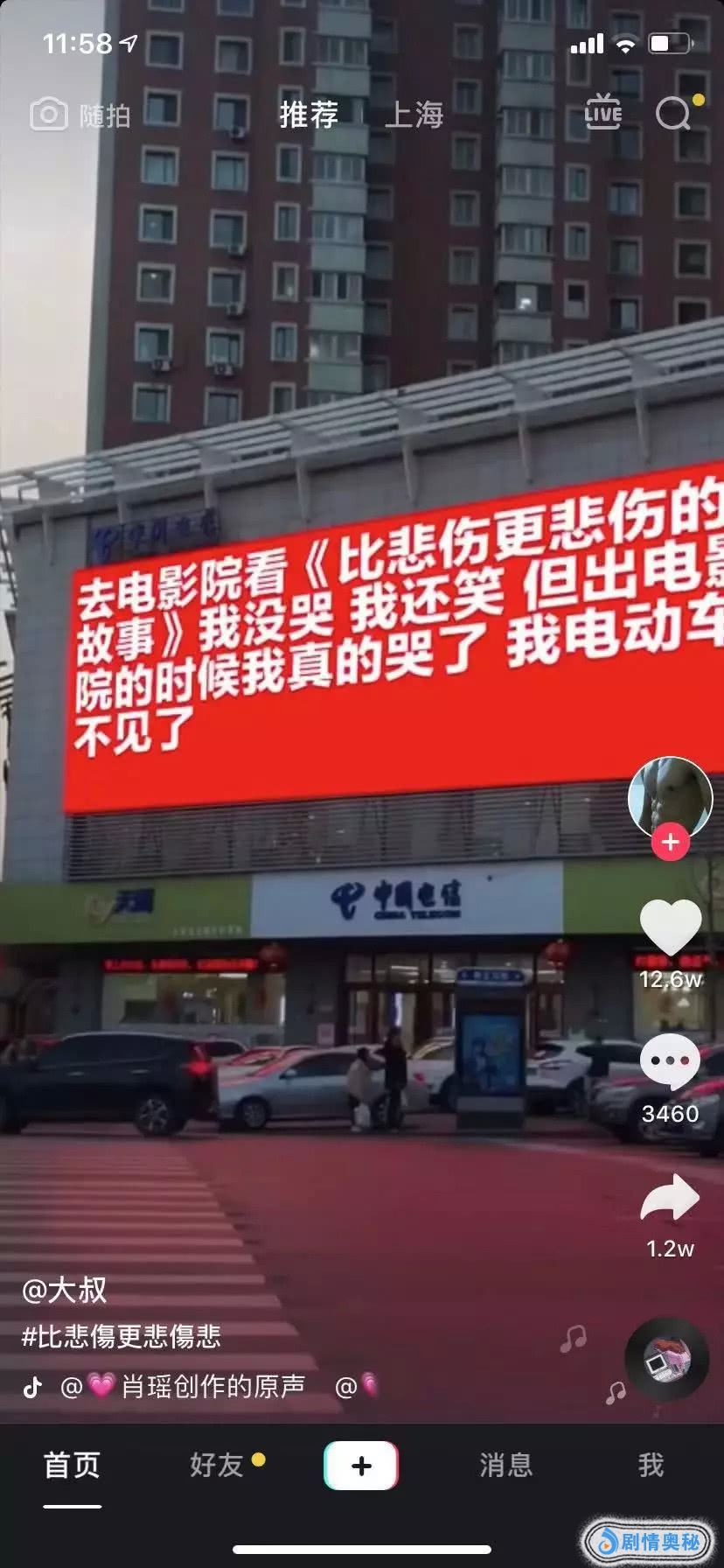 “去电影院看《比悲伤更悲伤的故事》我没哭我还笑,但出电影院的时候我真的哭了,我电动车不见了”。