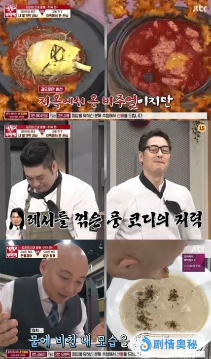 首先是品尝了Raymon Kim的“把我的脚趾拿出来”,朱浩民说:“视觉冲击力很强,但真的很好吃。咸丝丝的饺子和甜甜的汤汁相遇,甜菜的搭配效果不错。 拌面也酸甜可口”。接着,对于金风的“来自地狱的客人”,他表示:“金风的菜品很有质感和幽默感,金风的菜品就像是特殊分装团队制作的品质,很恐怖。但味道很健康”。“两道菜都有傲娇的感觉。虽然看起来很可怕,但如果吃了就注意健康,不要来地狱。这是为了保重健康的味道,让人感觉像是在东医宝鉴里一样”,朱浩民选择了金风。朱浩民说:“我感觉自己把地狱描写得恰到好处。吃完后想起了阎王”。