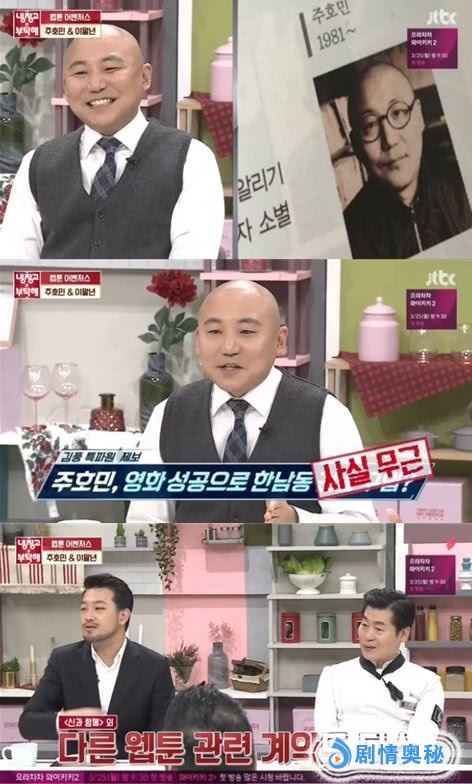 对于购买汉南洞大厦的传闻,他表示:“根本不可能。这是金风作家夸张的说法,其实也就是说在京畿道买个好房子”。随后,金风和李末年对朱浩民的近况毫不避讳,“《与神同行》第三、四部戏,电视剧,音乐剧,话剧等都签了合同”,让朱浩民惊慌失措。朱浩民说:“不管收入多少,我都不会去买楼,因为我对房地产没有兴趣。我只对漫画专心,对房地产真是外行”,引人注目。紧接着,传来了“朱浩民执着于观众数”的李末年作家的举报,引来一片笑声。