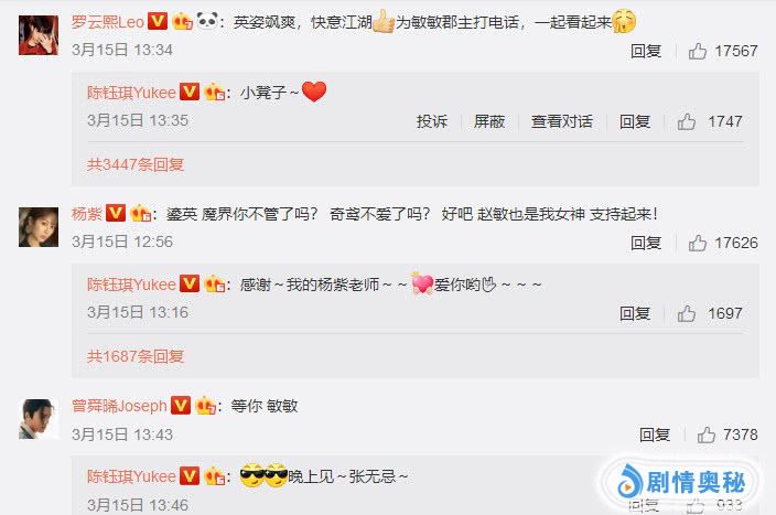 首先就是饰演小鱼仙馆的罗云熙,他说道“为敏敏郡主打电话,一起看起来”,而杨紫的宣传更加有趣一些,还喊话鎏英是不是不管魔界了?另外在剧中饰演月老的夏志远,饰演奇鸢的邹廷威都来帮忙宣传, 这一看《香蜜》中大半个剧组都帮忙宣传了,唯独一人没有出现。