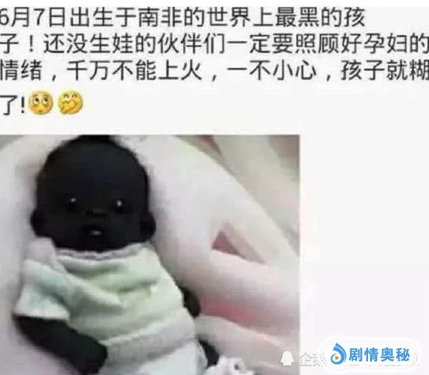 后面被证实了,多家新闻也进行了报道,这是纯天然的黑,毫无PS痕迹,他也是被认为是世界最黑的婴儿,因此一出生就创造了世界吉尼斯纪录,也有一些网友在网上调侃:在怀孕的时候,女孩子千万别发火生气,不然出生的孩子就会变成这样。