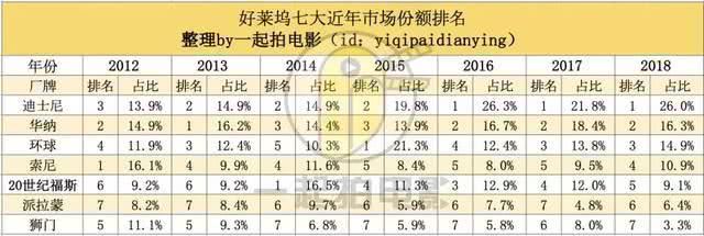 好莱坞近年来的第一名,都大致占据20%的市场份额,即使去年凭借《黑豹》《复联3》《超人总动员2》频频刷榜的迪士尼影业,市场份额也没有超过26%。然而随着今年正式收购福斯,迪士尼2019年之后的市场占比将长时间占据好莱坞第一的位置,并且有望在《阿凡达2》上映的2020年突破40%。让好莱坞成为真正的一超多强格局。