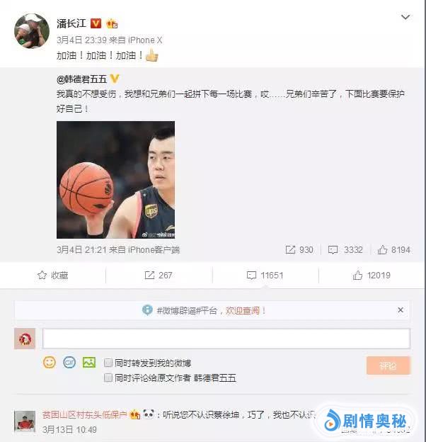 即使微博内容与“王牌对王牌”和蔡徐坤毫无关系(如潘长江转发韩德君微博为其加油),热评区也是清一色的“蔡徐坤”。