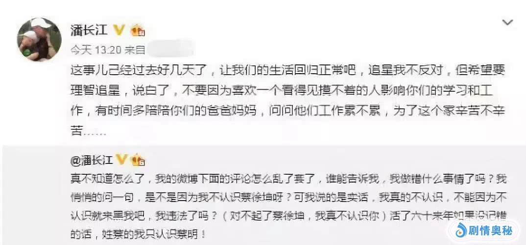 一天后,潘长江再度发博回复“粉丝”,“追星我不反对,但希望要理智追星...有时间多陪陪你们的爸爸妈妈。”