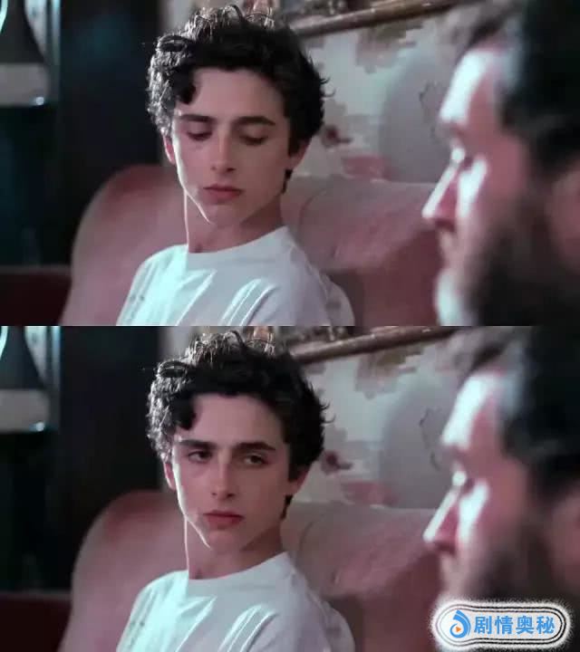 Elio坐在火炉前,一会儿伤心落泪,一会儿抿着泪水笑了,一会儿眼睛里又恢复了冷漠,