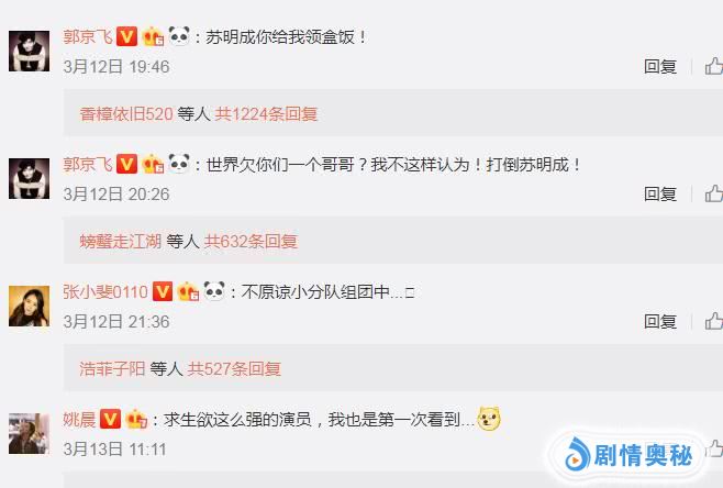 事情当然没有就此结束,网友在剧中吐槽完之后,又到了跟苏明成长得非常像的人的微博下进行了吐槽!这个人的名字叫郭京飞,他就是饰演苏朋成的演员!这位演员的演技真的是非常非常好,早在《龙门客栈》中,他的演技就得到了众网友的认可。而现在,他饰演苏朋成也是饰演的非常好,轻松的把这个人物的形象、特点、个性给饰演了出来!不过,就是因为他把这个人物饰演的太好了,所以才会被网友骂!