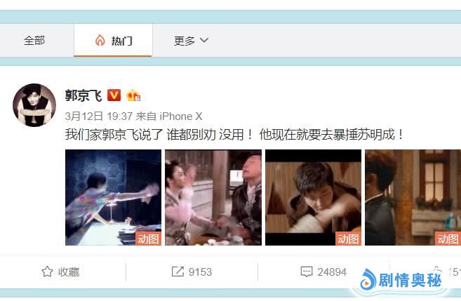 有时候,很多人就是因为演技太好,把坏人的坏演绎的淋漓尽致,才会被人误以为是坏人!郭京飞的演技,看来也是又有了提升,也是得到了众多网友的认可,所以才会被人当成“坏人”!有趣的事情来了,郭京飞为了“保命”,也是用出了浑身解数。他竟然在自己的微博下,更新了14条动态来“保命”,也真的是非常有趣了,下面,让我们一起来看一下,他都更新了什么动态!